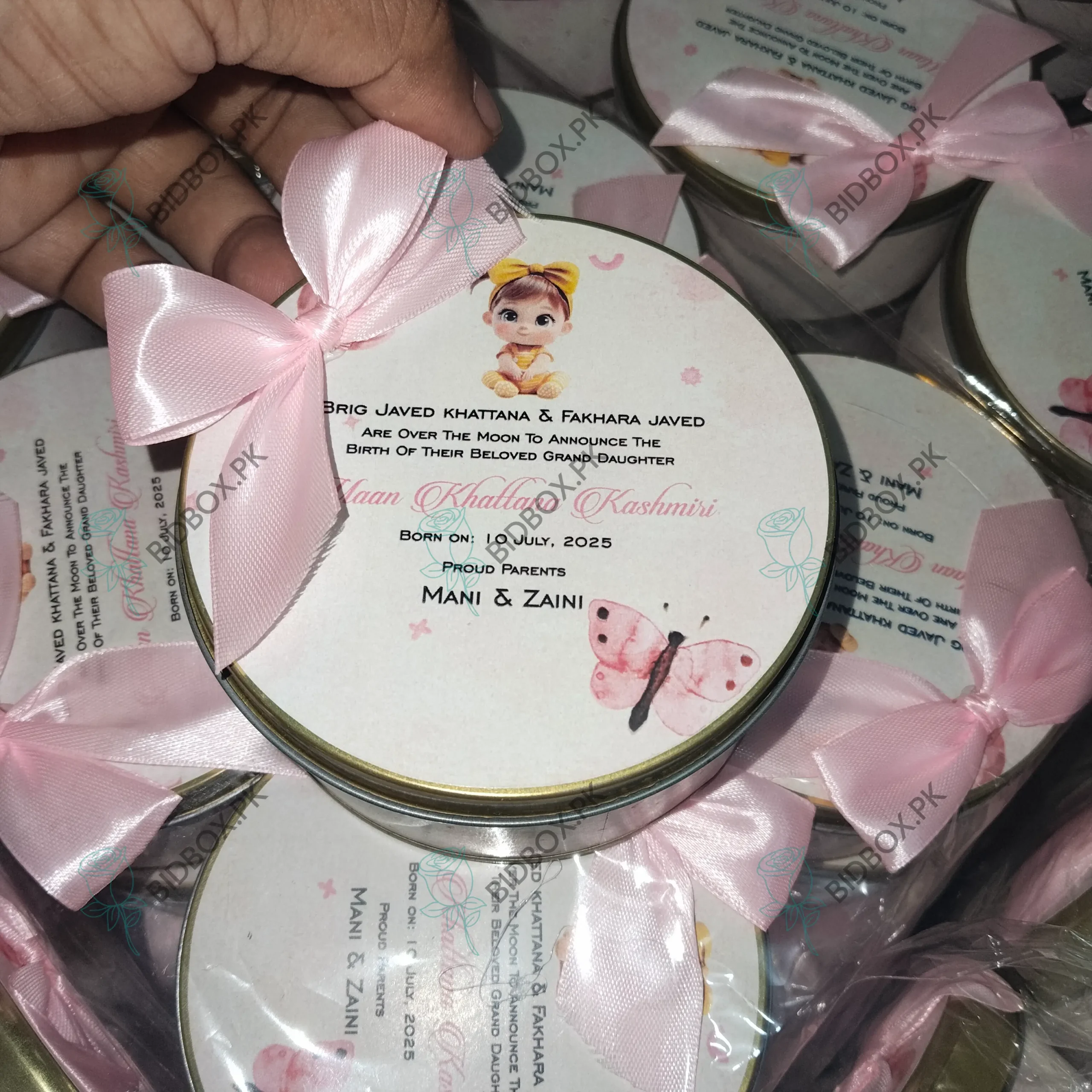 250 Gram Sweet Tin Box For Baby Girl Announcement