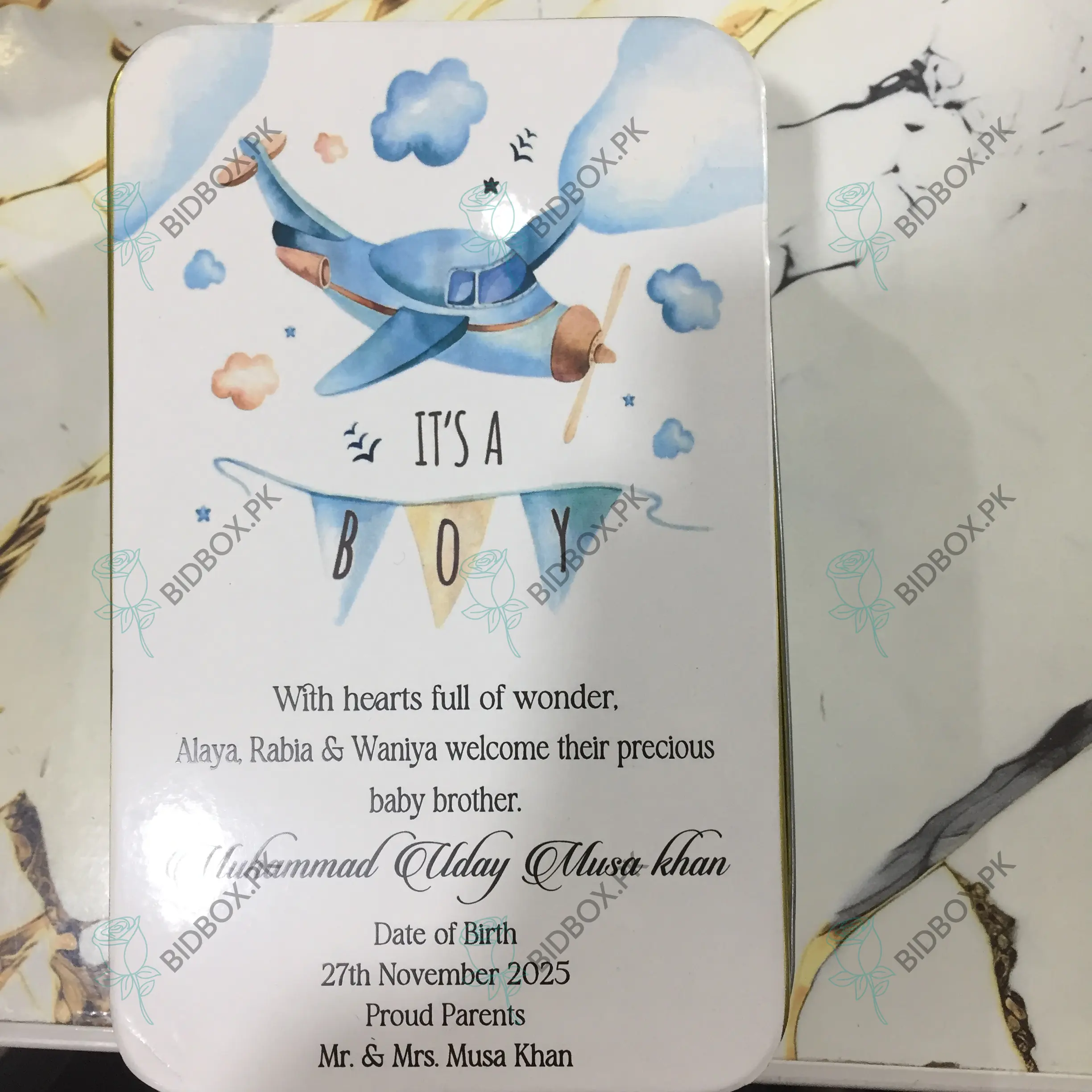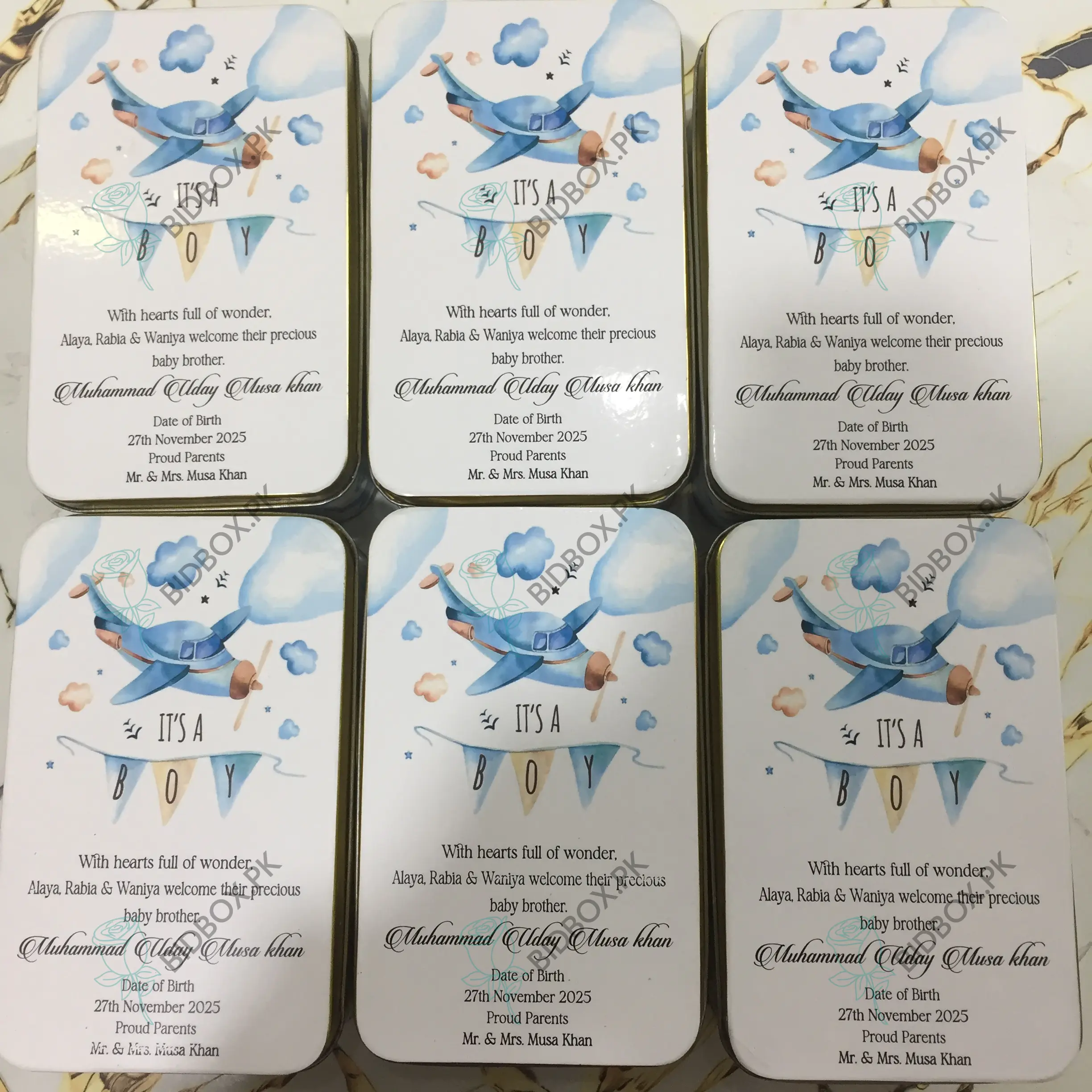 Beautifully crafted baby announcement boxes