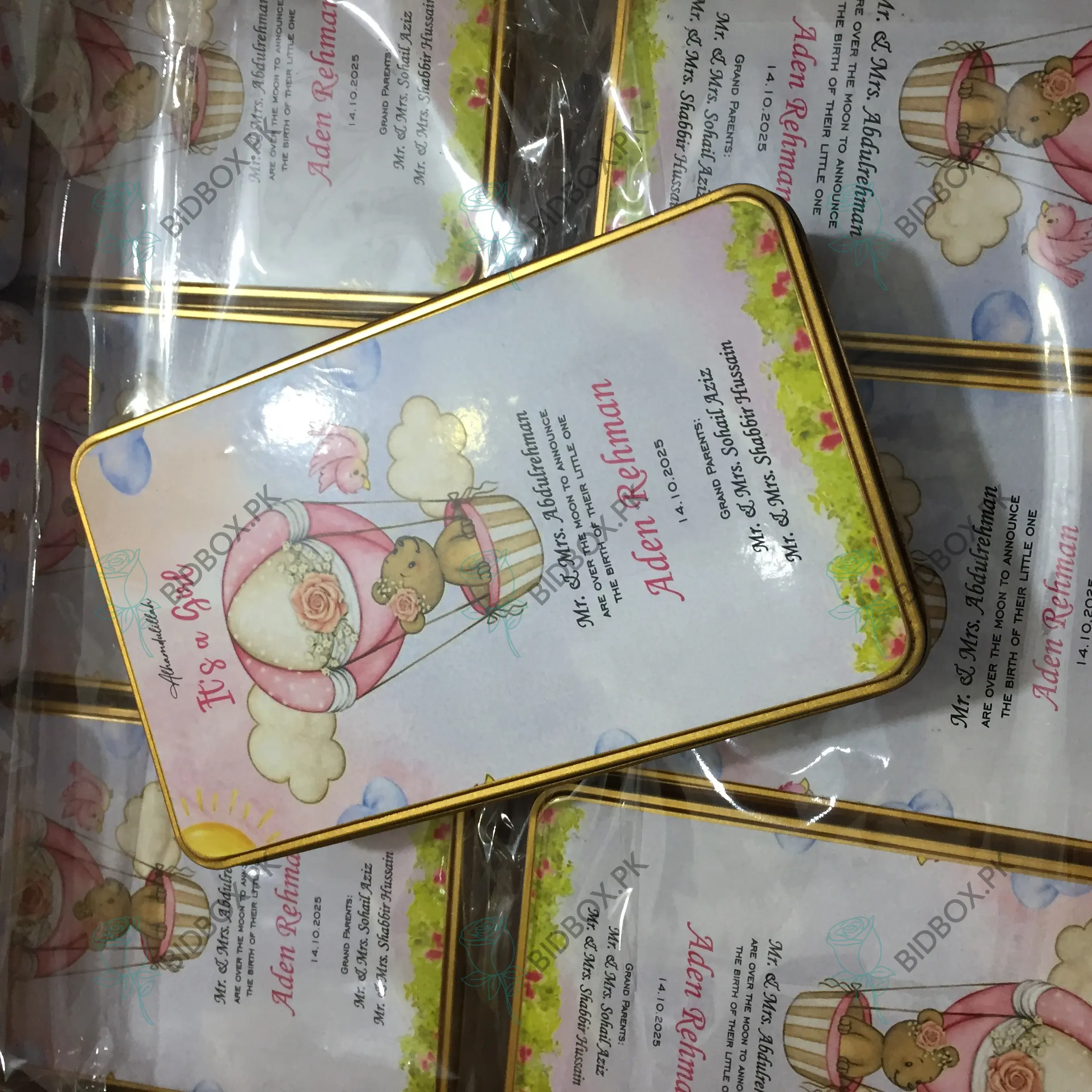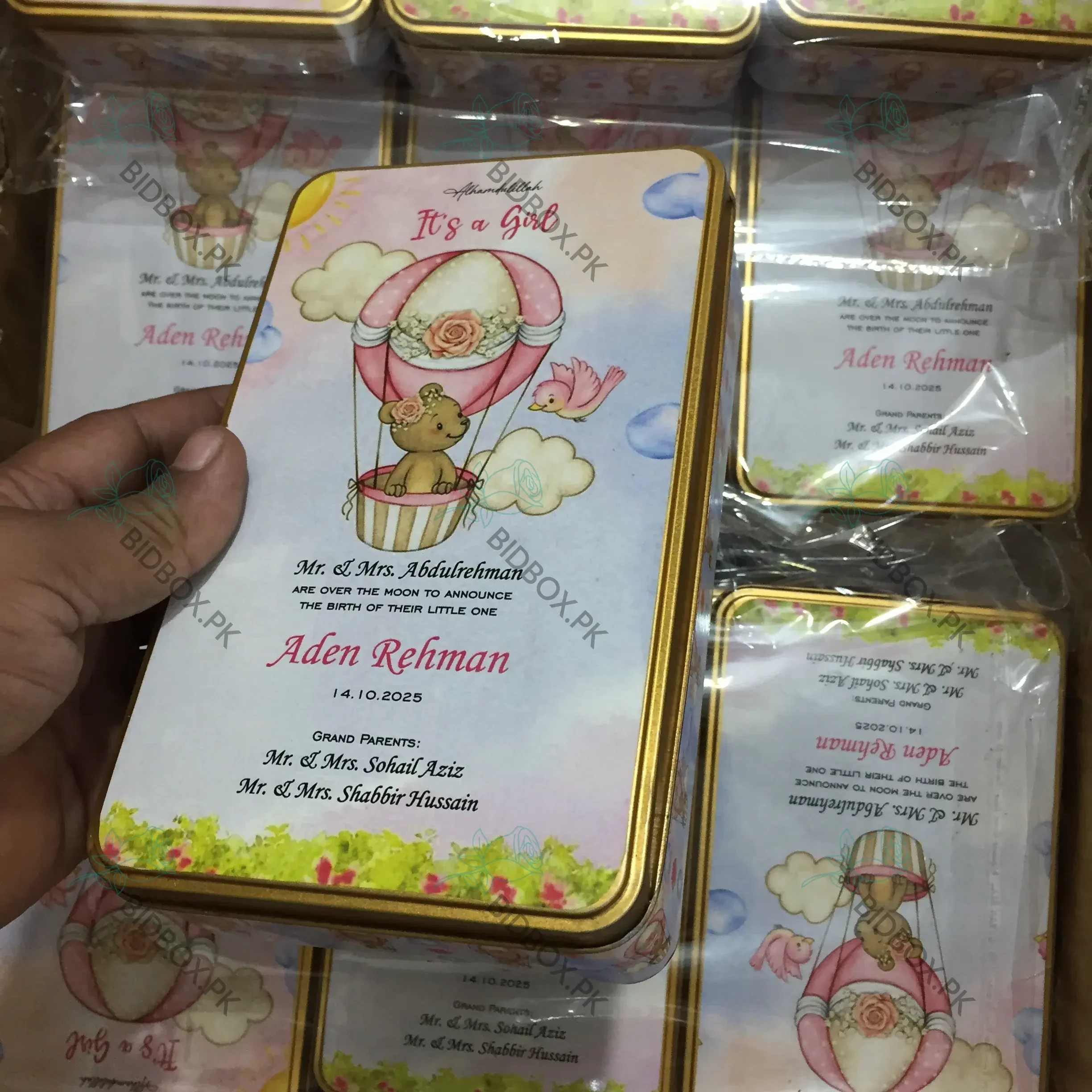 Be the first to review “Half kg Baby Girl Announcement Tin Box”