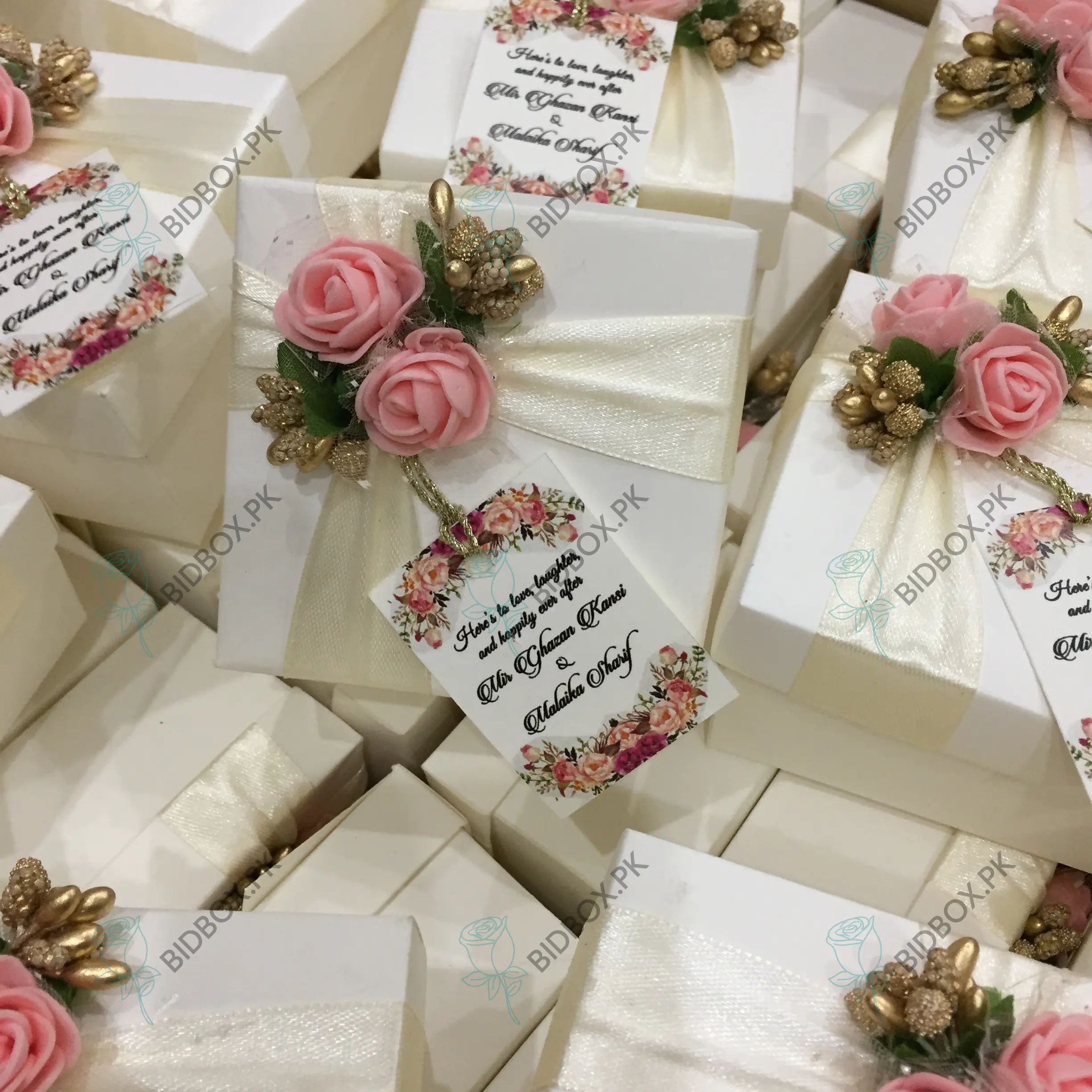 All your wedding needs including Pink Flowers Box With Tag boxes and more…